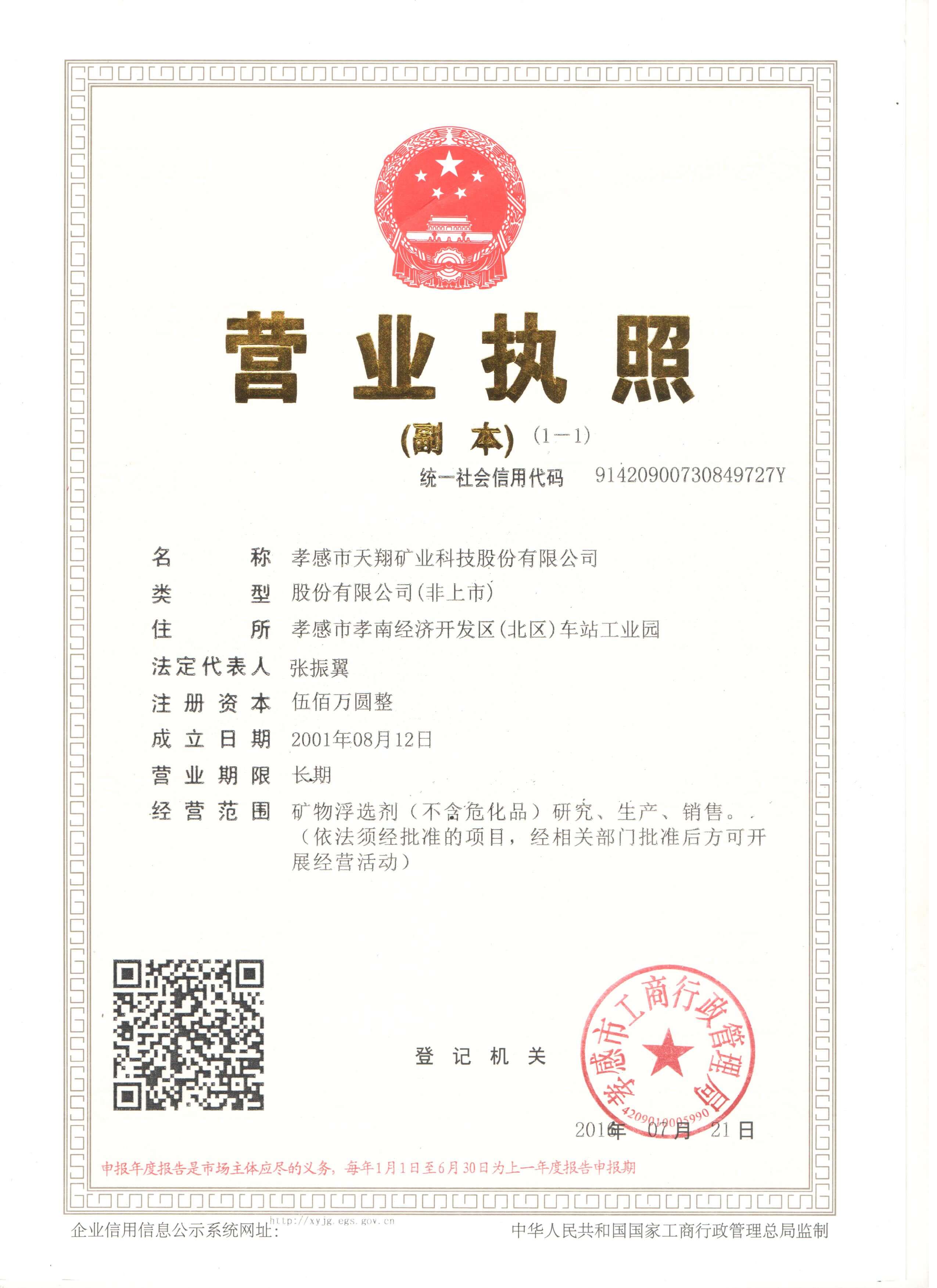 孝感市天翔礦業(yè)科技股份有限公司是一家專業(yè)從事氧化礦浮選藥劑研究開發(fā)和生產(chǎn)的企業(yè)。成立于1996年,經(jīng)過20多年的研發(fā)與生產(chǎn)實踐,產(chǎn)品覆蓋磷礦、鋰礦、螢石礦、鎢礦、錫礦、鈦鐵礦、鋁土礦、稀土礦等多礦種的浮選藥劑,在業(yè)內(nèi)享有一定知名度。一份耕耘,一份收獲,多年的積累一定會產(chǎn)生行業(yè)認可的高端產(chǎn)品。公司將會提供給礦山高效、有競爭力的產(chǎn)品,會與礦山企業(yè)一道,共同為行業(yè)發(fā)展作出優(yōu)秀的貢獻。